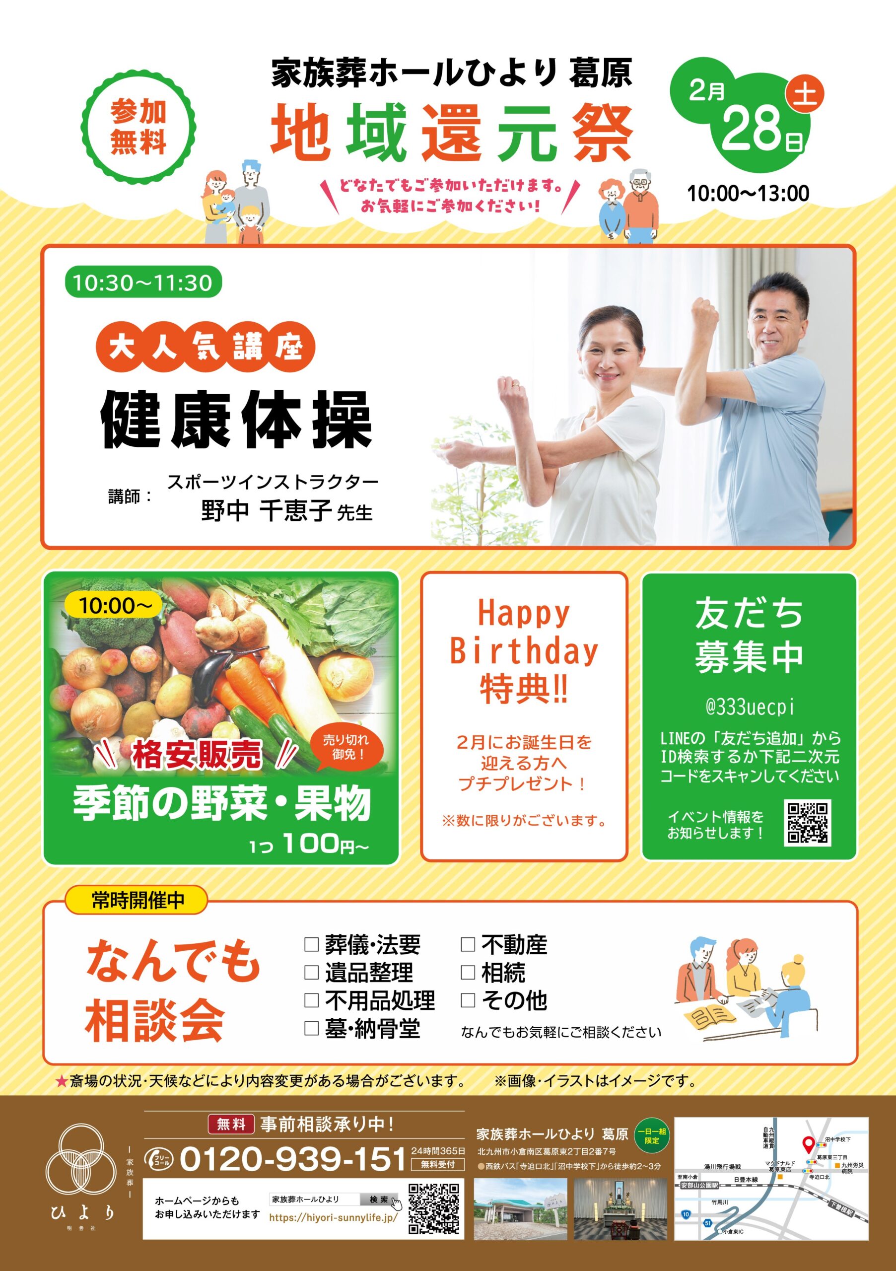 2月度 家族葬ホールひより 葛原 地域還元祭開催のお知らせ